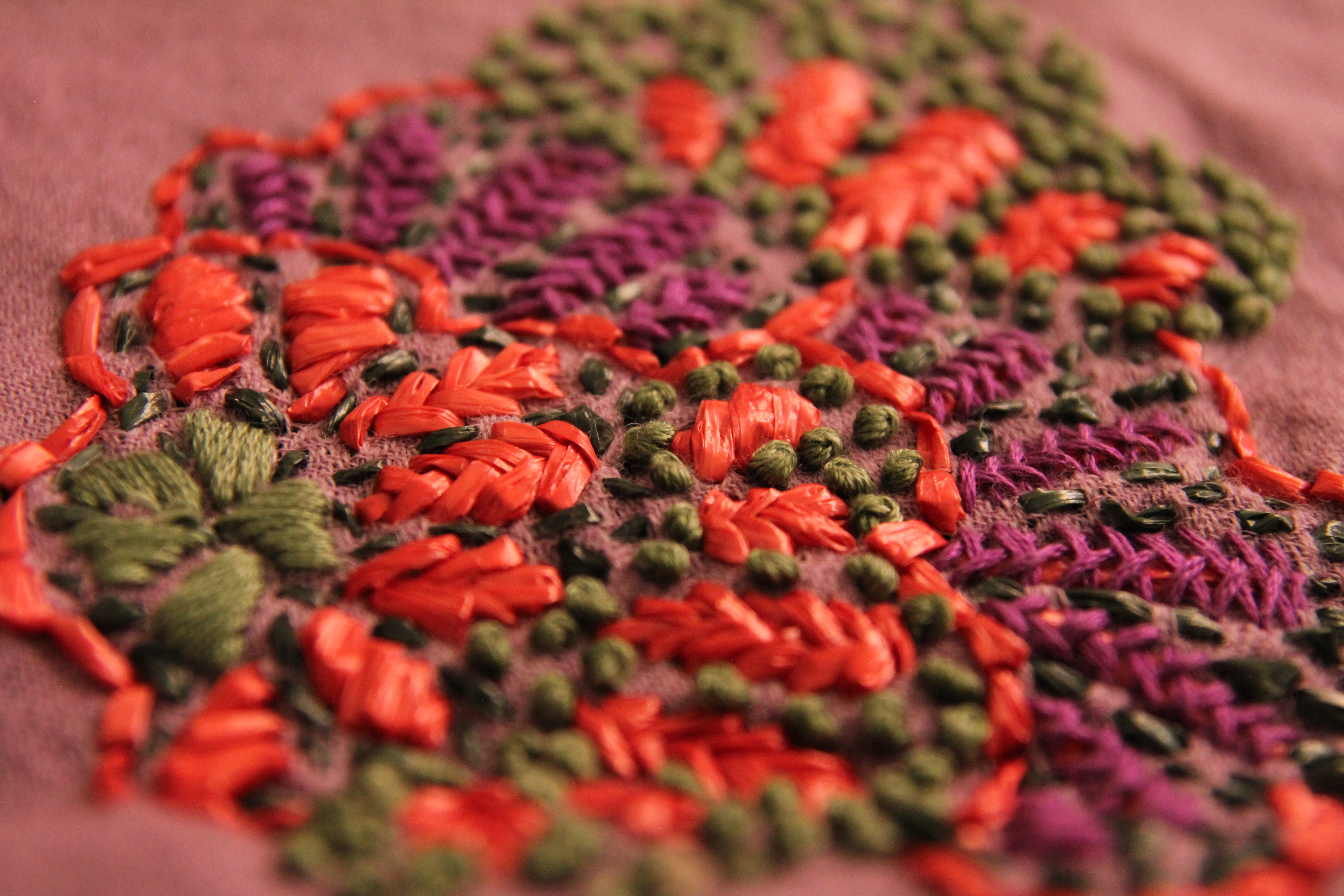 French Knots & Herringbone Stitch with Silk Thread and Rafia (Hand Embroidered)