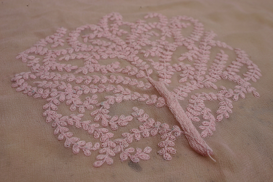 Cachet specializes in all kinds of hand and machine embroidery. We have a large team of embroiders who make it possible for us to offer a diverse range of embroideries such as metal thread zardozi, chikankari, aari, kantha, chain stitch & cut work amongst many others.