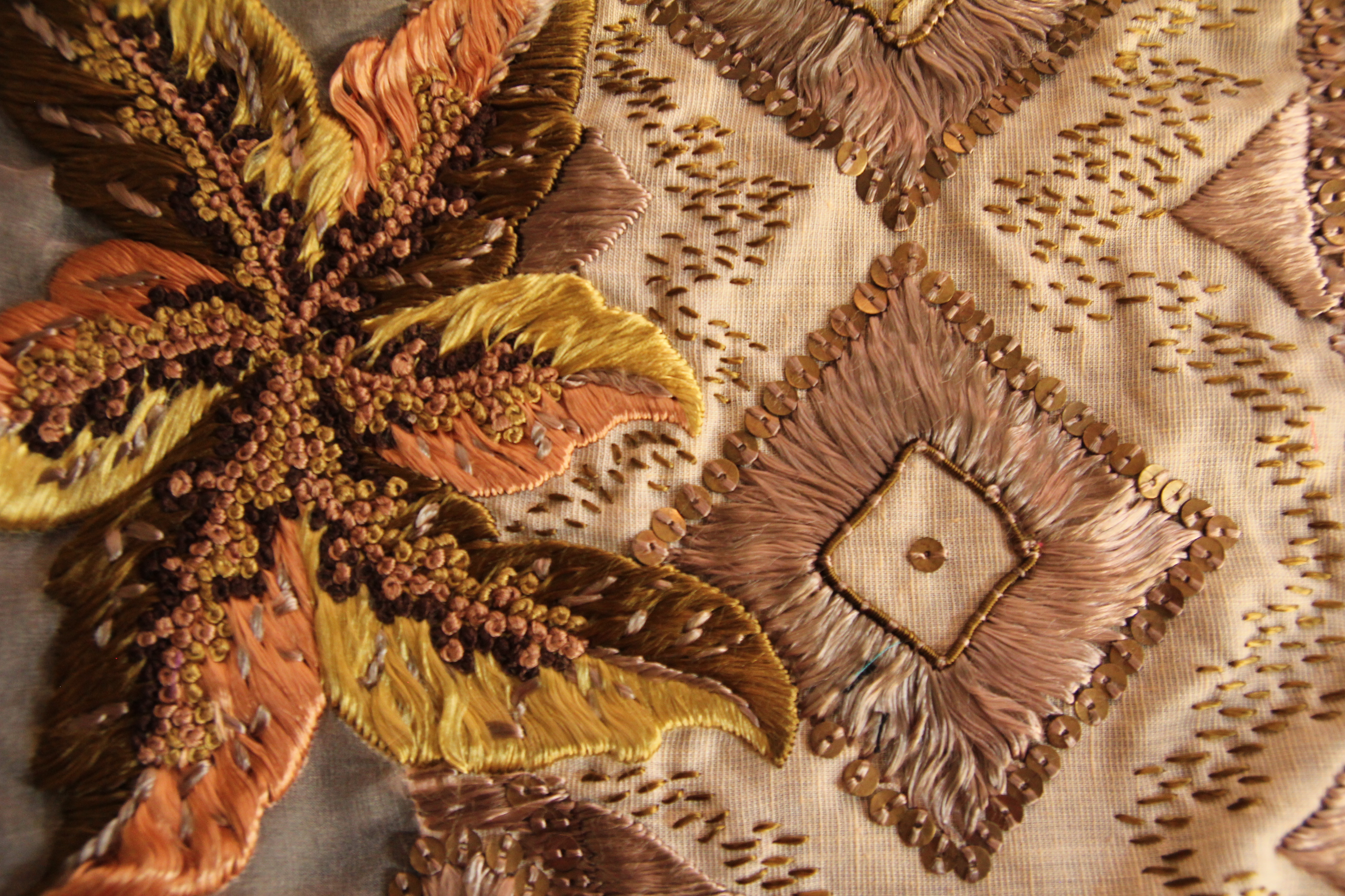 French Knots / Long Satin Stitch with Kantha Technique / Running Stitch in Silk & Floss / Metal Sequins (Hand Embroidered)